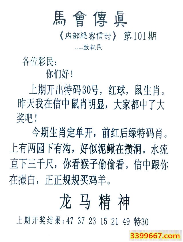 | 主题 :101期:首发推荐:≮馬會傳眞≯→(香港正版) |