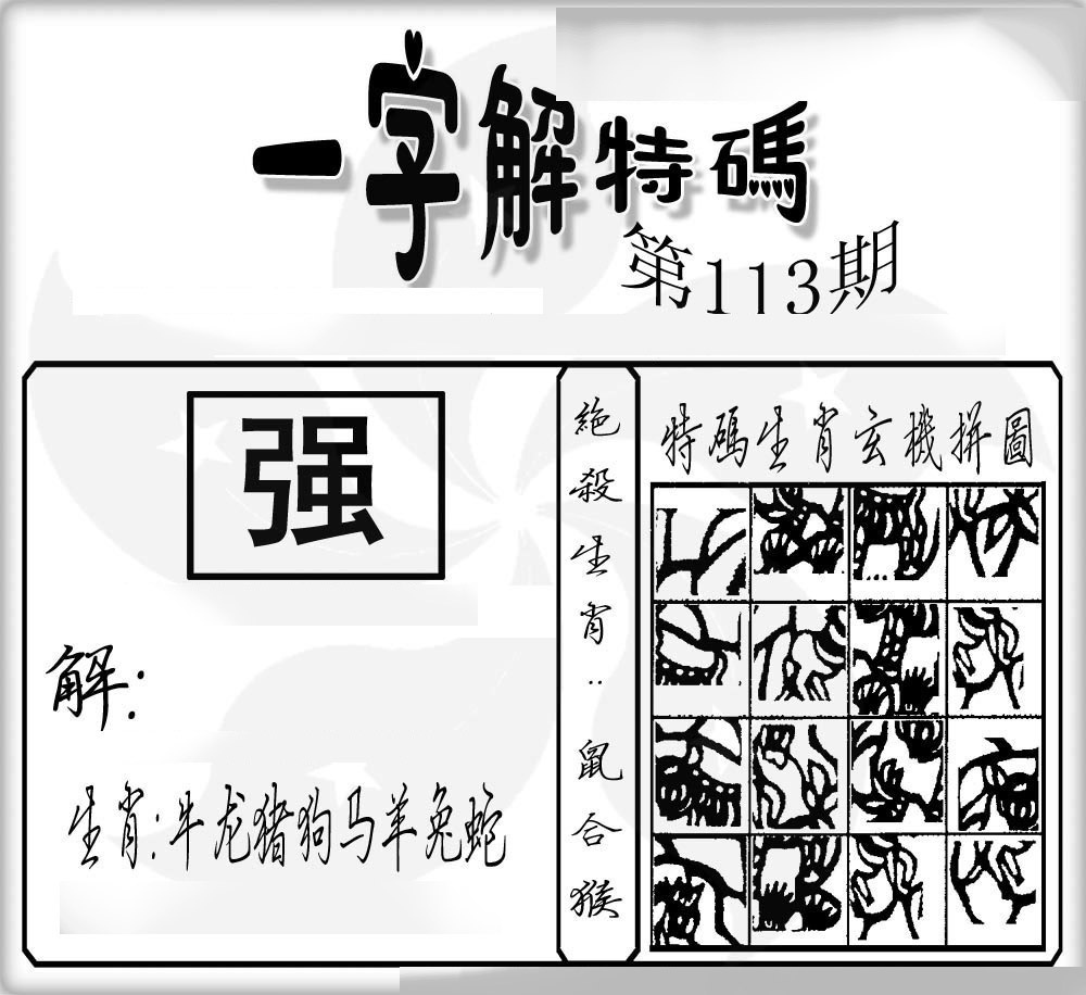| 主题 :113期:一字解特码 |