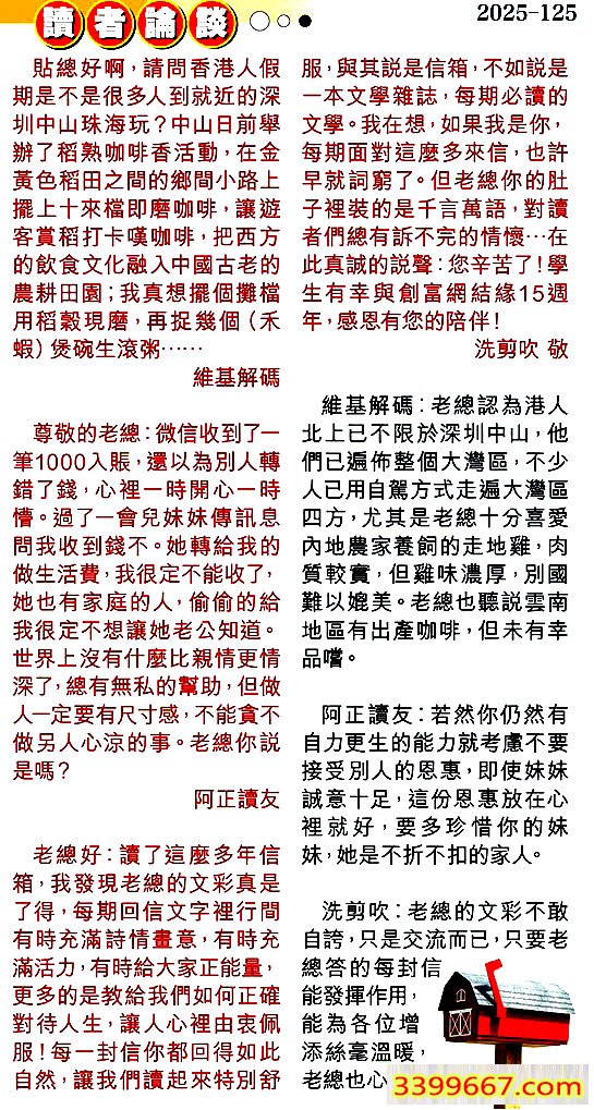 125期:彩民推荐〖貼信讀者論壇〗