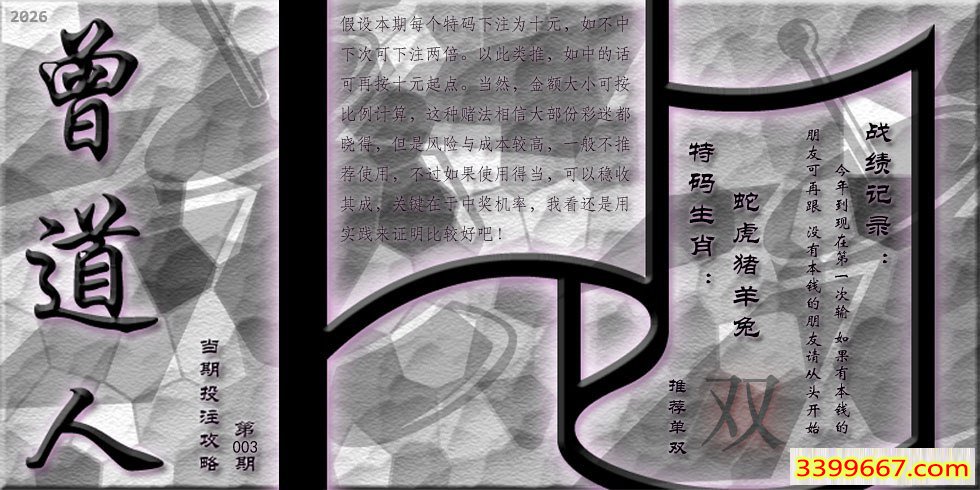 主题 :003期藏寶圖 新:君今旧隐治叁泾 老:交游相见休相问 禁:狗 禁:3尾