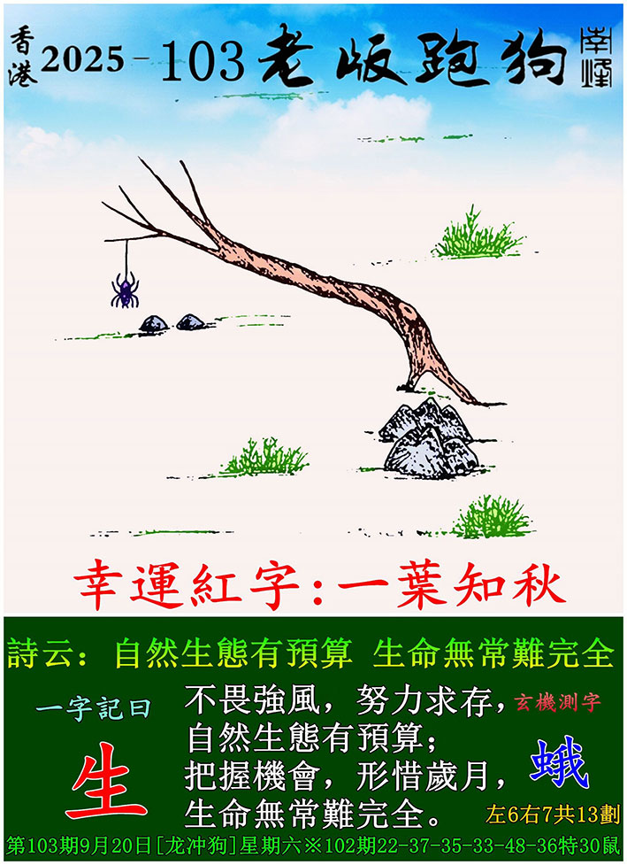 主题 :103期老版跑狗一字記之曰:【生】 玄機測字:《蛾》