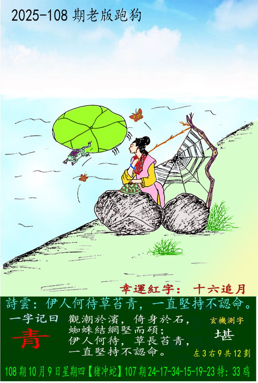 108期老版跑狗一字記之曰:【青】 玄機測字:《堪》