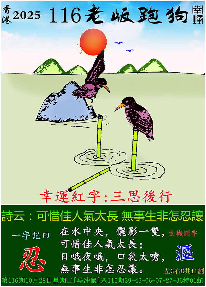 主题 :116期老版跑狗一字記之曰:【忍】 玄機測字:《區》