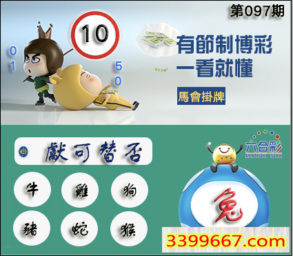 097期正版彩图挂:10 爆:兔 挂牌成语:献可替否 挂牌出肖:牛鸡狗猪蛇猴